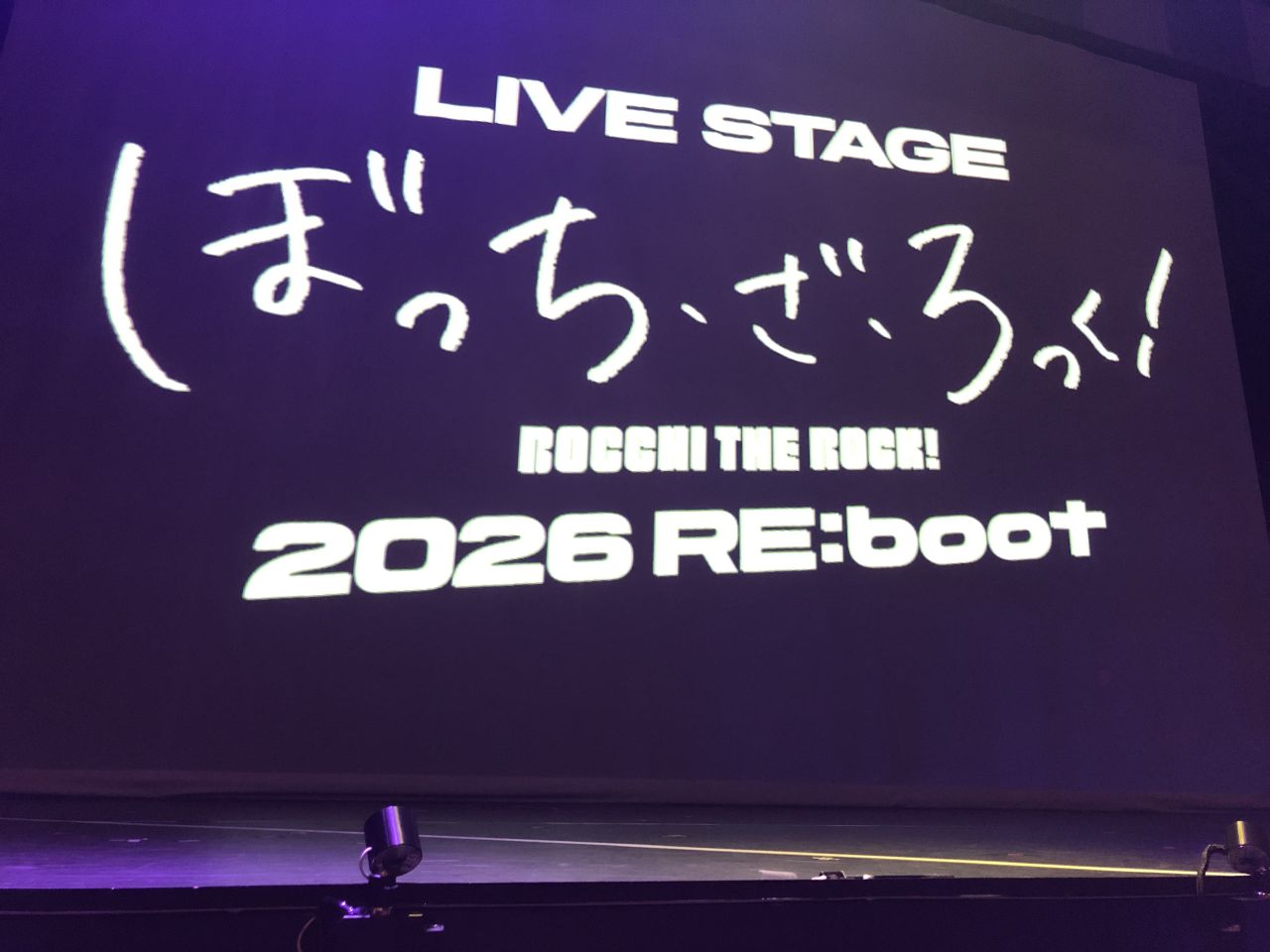 ・休憩中、舞台上を撮影可能だが、1幕終了時に舞台上にセットされていた楽器類はすぐ片されて、スクリーンが下ろされるので(写真2。A列からの1枚)、楽器を撮りたい場合は素早く撮影を。俺はスマホの電源を入れていたら出遅れて撮れなかった